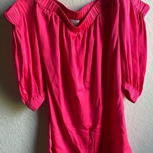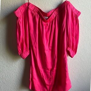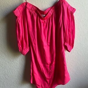 Milly Silk Off Shoulder Elastic Neckline in Fluo Pink Mini Coquette Dress Sz P