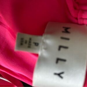 Milly Silk Off Shoulder Elastic Neckline in Fluo Pink Mini Coquette Dress Sz 2P