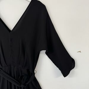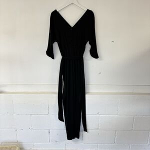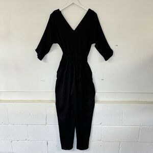 Milly Silk V Neck 3/4 Sleeve Pleated Belted Pant Jumpsuit Dressy Black Size 0