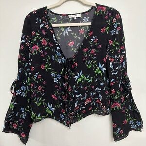 Milly Silk V neckline Top With Wildflower Print Size Medium