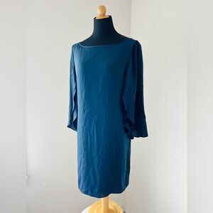 Milly Silk blend V-Neck Butterfly Dress Long Navy Blue Silk Blend Dress Size 8