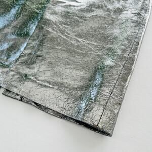 Milly Silver Midi Leather Skirt Size 4 Crinkle Print Knee Length Pencil Business