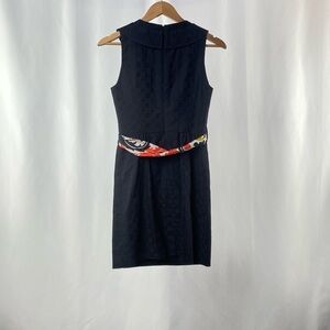 Milly Sleeveless Collared Scarf Belt with Decorative Buttons Sheath Dress Navy 0