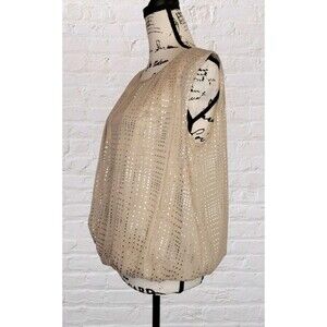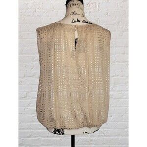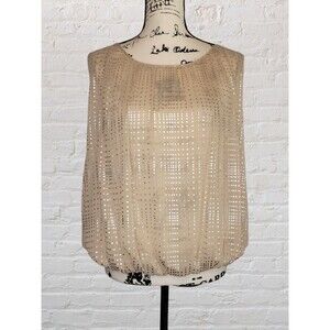 Milly Square Dot Bubble Hem Sleeveless Blouse Womens 6 Beige Chic Career Layering