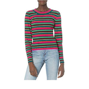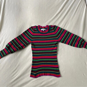 Milly Striped Ribbed Puff Sleeve Sweater Colorful Stretch Size P (0-2)