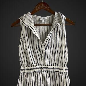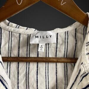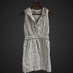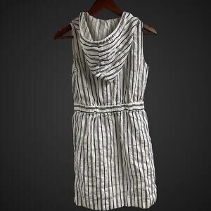 Milly Striped Short Dress With Hood 4 Linen Blend Made In USA Nautical Casual