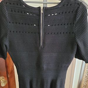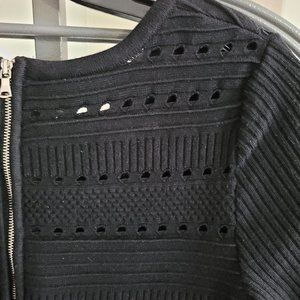 Beautiful sweater dress with cut out pattern at the top, bottom and sleeves of dress with zipper on back.