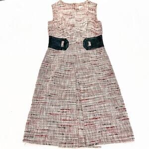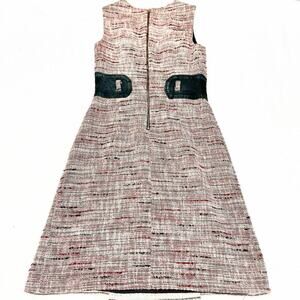 Milly Tweed Red Sleeveless Shift Sheath Dress Suede Waist Accent Size 6 Italy