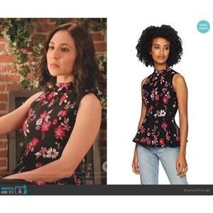 Vivid blooms enliven this knit Milly top fashioned with a ruffled peplum for a feminine finish to your look.