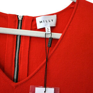 Milly Twist Fit and Flare Dress Size Small Red Knit Short Sleeve V Neck