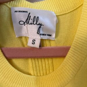 Elevate your style with this vibrant yellow Milly midi dress. Features a sleeveless design and pleated skirt. Ideal for any occasion.