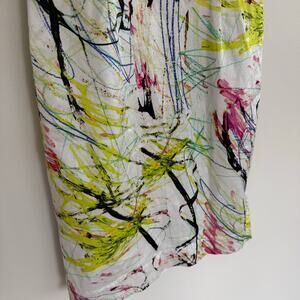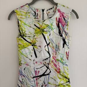 Milly White & Multi-Scribbled Print Sleeveless Shift Dress. A statement, luxury piece. Exposed back zipper. Lined. Round Neckline. EUC, Worn 1x and dry cleaned.