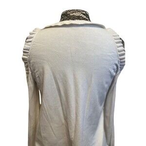 Milly White Sweater Top Knit Cold Shoulder Long Sleeve Ruffled Collar Feminine M