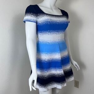 Milly Women Size L Blue Stripe Fit & Flare Pullover Mini NEW Skater Dress Preppy