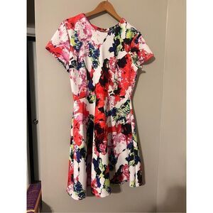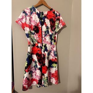 Milly Women's 12 Short Sleeve Fit & Flare Mini Dress Multicolor Abstract Floral