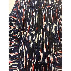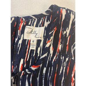 • abstract print dress, Milly dress size 6, linen silk dress, navy red dress, pocketed dress, casual chic dress, made in USA dress, rear zip dress, sleeveless women's dress, lightweight summer dress, designer sleeveless dress