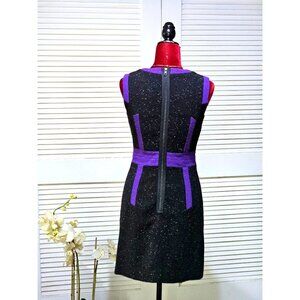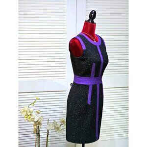 Milly Women's Black Purple Wool Blend Trim Tweed Shift Dress Size 2 2573