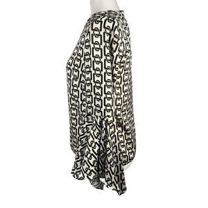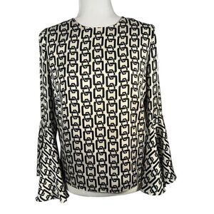 Milly Women's Black & White Keyhole Holly Bell-Sleeve Chain-Print Top Size 2