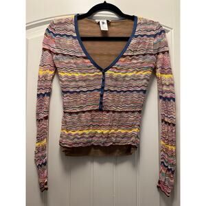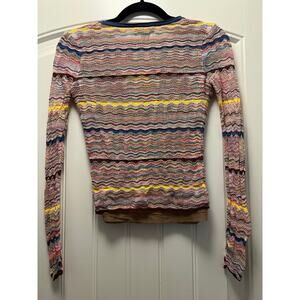 Milly Women’s Scoop Neck Multicolor Stretch Striped Knit Long Sleeve Top Size S