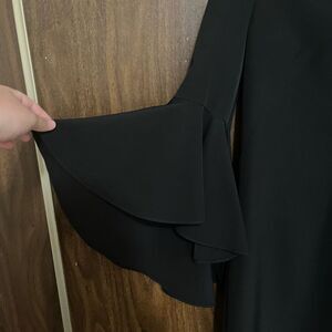 Milly Women's V-Neck Bell Sleeve Keyhole Back Fully Lined Shift Dress Black Sz 6
