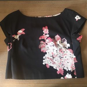 This Milly crop top is cut from floral faille for a ladylike look. Cap sleeves and a boat neckline complement the dainty, feminine aesthetic.