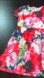 It features a playful pattern of watercolor red, white, green, yellow patern with short sleeves.