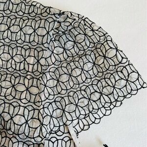 Absolutely gorgeous "Pink Ballet Cap Sleeve" dress. Neutral organza overlay with black geometrical floral design. Slip/lining is a nude/cream color.