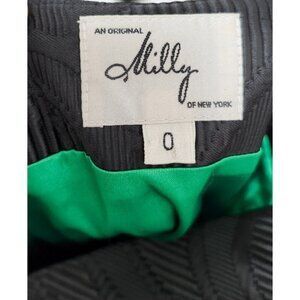 The Milly of New York Cocktail Dress in size 0 is a sleek and stylish black pencil dress perfect for a party or cocktail event. It features a sleeveless design, a short dress length, and a flattering silhouette. Made in the United States, this dress is designed for the summer and spring seasons, and is recommended to be dry cleaned only to maintain its quality. Its brand, MILLY, ensures that you are getting a high-quality and fashionable garment for your special occasion.