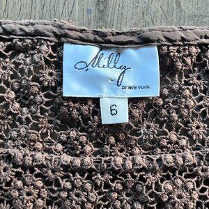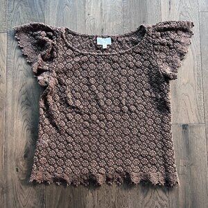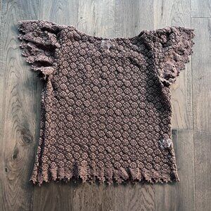 Milly of New York Crochet Knit Ruffle Sleeve Top Scallop Brown Boho Y2K Size 6