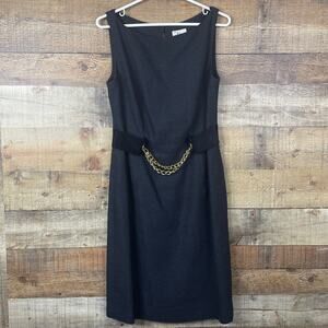 Milly of New York Gray Wool Silk Sleeveless Sheath Dress Gold Chain SZ 10