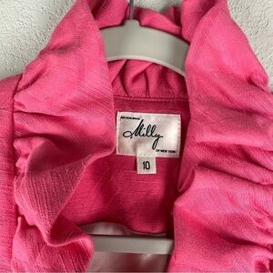 Milly of New York Hot Pink Ruffle Belted Vintage Dress Size 10