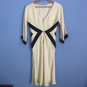Ivory dress with black detail. Size 0, 100% silk. Brand new with tags still attached.