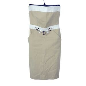 Milly of New York Khaki and White Strapless Dress With Removable Chain Belt