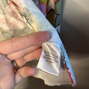 Cotton cardigan sweater with purple gemstone buttons. Pattern is a summery floral. Size small.