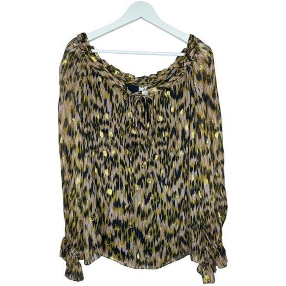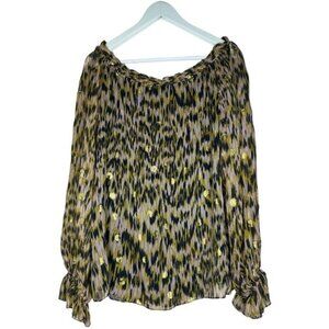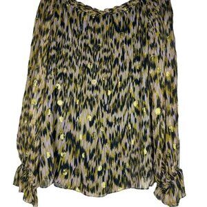 Milly of New York Printed Golden Polkadot Long Sleeve Blouse