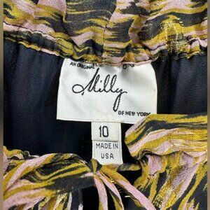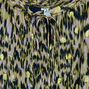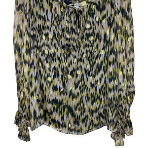 Milly of New York Printed Golden Polkadot Long Sleeve Blouse with Tie Front, Size 10, Preowned Condition