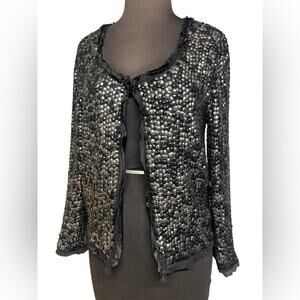 Milly of New York Silk Sequin Black Silver Evening Jacket 10 Whimsigoth Mobwife