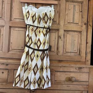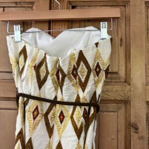Milly of New York Size 2 Strapless Dress Embroidered Metallic Belted