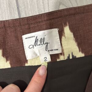 Milly of New York Brown Dress V Neck Belt Cap Sleeves Large Buttons Pockets Size 2