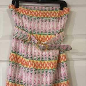 Milly of New York Embroidered Belted Spring Strapless Dress, size 4. Excellent used condition. Lined. Built in support with adjustable bra hooks. Farting in front chest area. So adorable! Perfect for Easter in the south!