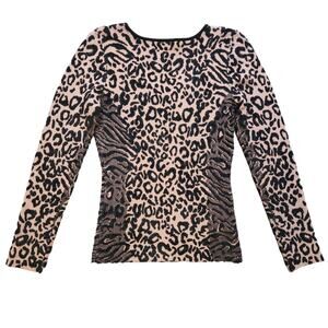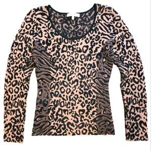 Milly Scoop neck leopard-print knit top is a fitted, long-sleeve knit top to style for any setting. Scoopneck, long sleeves, pullover styling, size small.