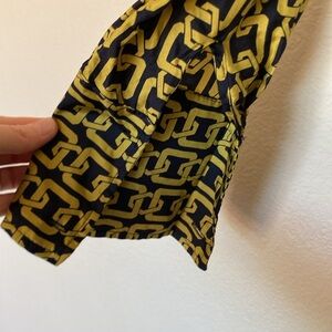 Milly silk long sleeve button down chain blouse size 8 gold blue EUC