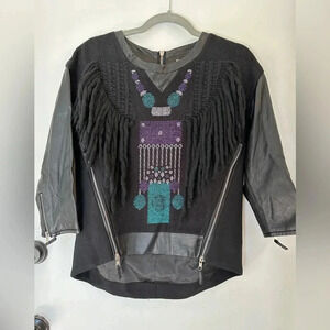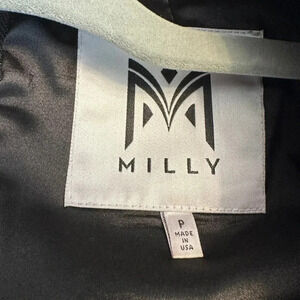 Milly sparkle robot leather top zipper accent size P. I don’t know what size P is. But pit to pit is 19” length is 21” in the front and 26” in the back. Excellent condition material tag is removed