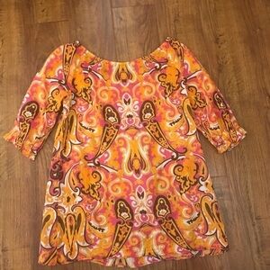 Milly New York tunic paisley print tunic top with gold lace detail down front