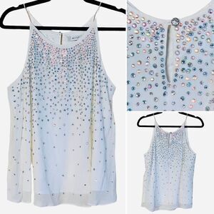 Milly x Revolve White Silk Flyaway Crystal Rhinestone Camisole Tank Top Sz S/4-6