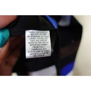 - Polyester/spandex; lining, polyester.