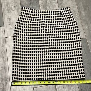 Milly Black Ivory Mod Print Polka Dot Soft Virgin Wool Career Pencil Skirt 10
