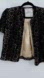 Satin golden beige with black lace overlay short sleeve jewel neckline open formal cardigan blazer cape by Milly.