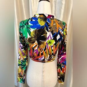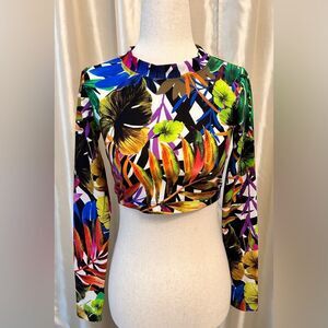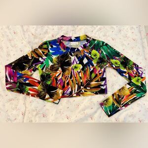 Milly Cabana, Tropical Print Long Sleeve/ Swim Crop Top Size P/extra small
