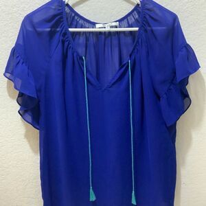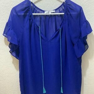 Milly For Design Nation Blue Sheer Chiffon Blouse Size M